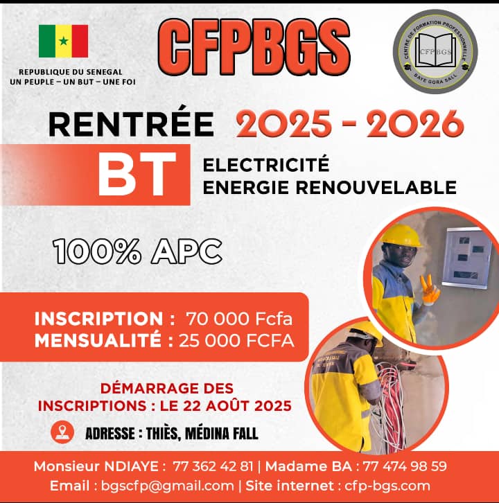 Rejoignez-nous au Centre de Formation Professionnelle BGS pour explorer les possibilités infinies que nos formations en Approche Par Compétences vous offrent dans le domaine passionnant de l'électricité !